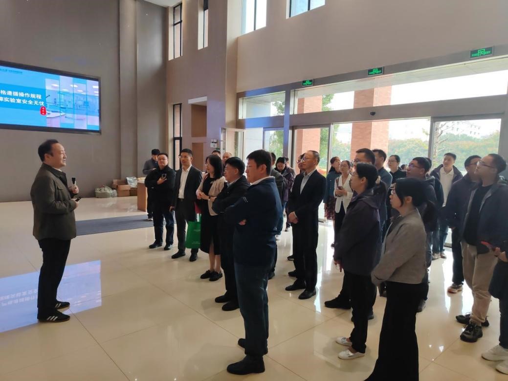 闵小波教授向考察团系统回顾了中心的发展历程,并重点介绍了近年来在科技创新方面取得的一系列重要成果。他表示,中心始终坚持以国家重大战略需求为导向,特别是积极响应生态文明建设与绿色发展要求,持续增强承担国家级重大科研任务的能力。通过不断推进高水平科研平台的内涵建设与开放共享,深入推动产学研用协同融合,大力促进多学科交叉创新,中心在重金属污染防治、清洁生产技术与环境生态修复等领域取得了一批具有显著影响力的高水平科研成果,为相关行业的结构调整、绿色转型和可持续发展提供了坚实的科技支撑与人才保障。